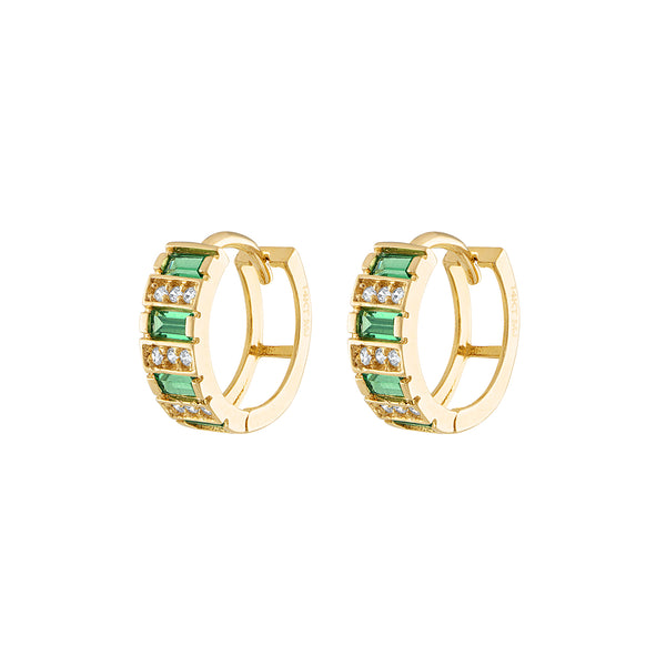 This 14K Channel Set Huggie Hoop Earring is a timeless classic for the modern sophisticate. Featuring shimmering green and white cubic zirconia stones nestled in a delicate channel setting, it's a perfect statement piece to add to any jewelry collection.