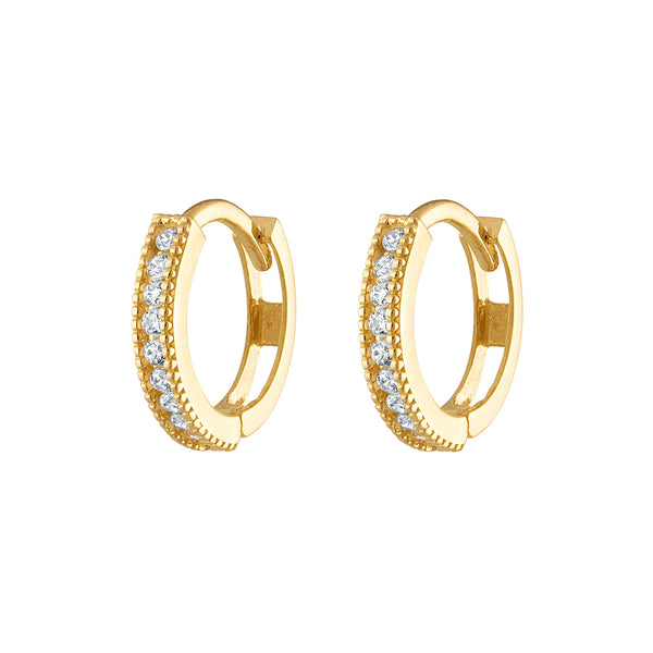Beaded Pave Hoop Huggie Earrings 14K Gold