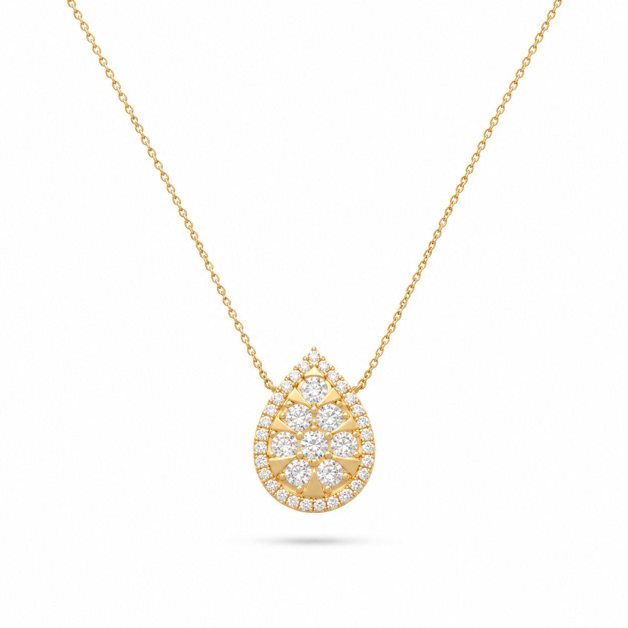 A natural choice for everyday casual wear or a formal event. Classic and glimmering this cluster pear necklace is sure to get a wow factor.